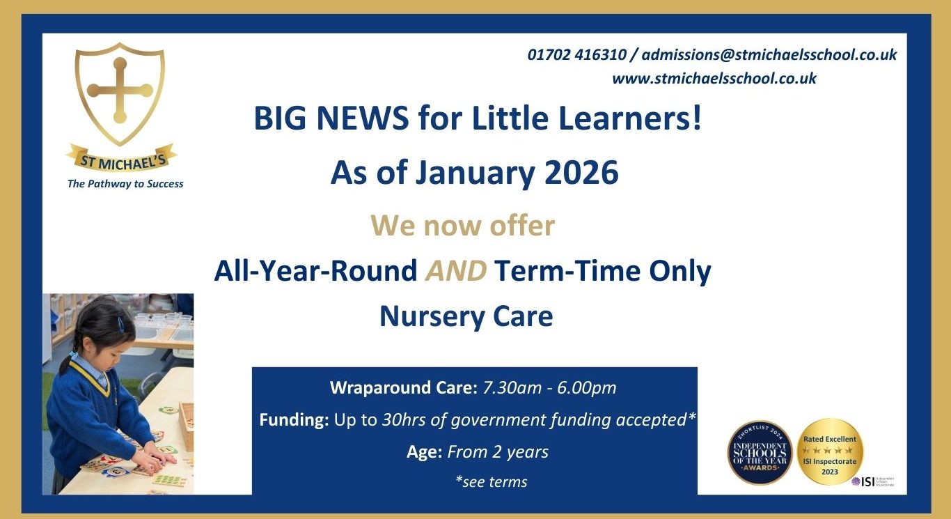“St. Michael's has been on our radar for the last few years following on from various positive conversations with different people about the school, your results and the general atmosphere and approach. With our daughter now turning two, we felt it was a good time to start enquiring and visiting the school. We're so glad we did!”